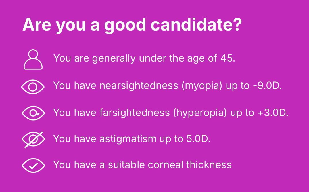 To know for sure if LASIK is right for you, a consultation is needed. However, the ideal candidate typically meets these points: